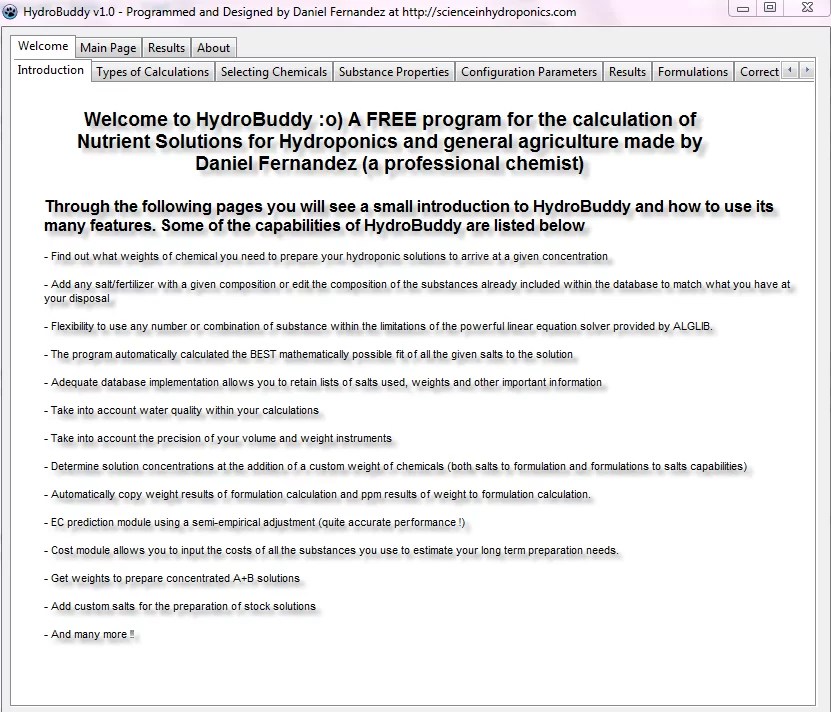 There are certainly a ton of improvements that I have implemented within this new version of HydroBuddy, redesigning the way in which everything was coded to be more transparent and efficient. Perhaps the most important change is the implementation of an adequate database system so now we don’t need to handle all those nasty text files and do things in the primitive way in which HydroBuddy was doing them. Although the program did its job – for the most part – the implementation was too inflexible and everything was “hard coded” — so to speak. The new database flexible implementation allows you to add or edit the composition of any of the salts included within the program and even to use custom salts within concentrated solution preparations.